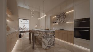 Adorn your kitchen floors and walls with luxury tiles, creating a visually stunning and enduring backdrop.